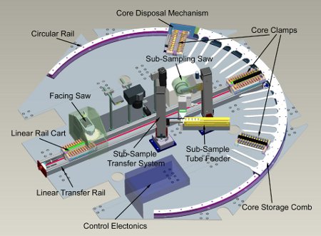 Core Sample Handling System for the MARTE drill project at NASA. Software took commands from an internal planning system, and controlled conveyor belt, subsampling saws, depositing sample in mass spectrometer, and other tasks needed for the robotic platform to complete experiments.